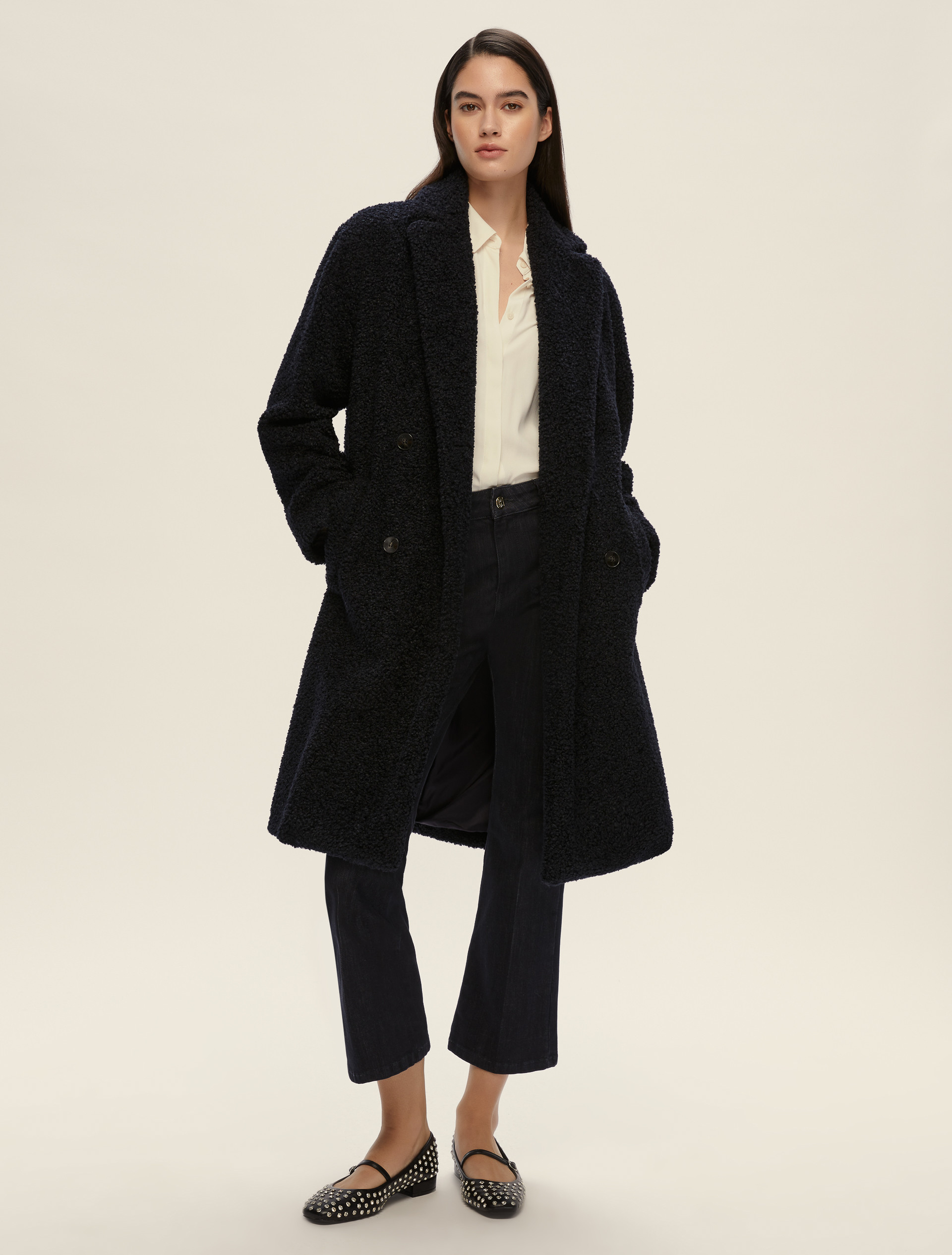 • Lined coat in jersey bouclé fabric